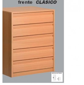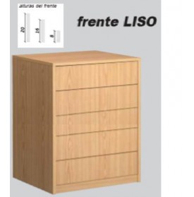 Información del producto: Cajonera de 5 cajones, costados, tapa, zócalo y frentes de cajón en 19 mm. en el color elegido. Se sirve MONTADA.