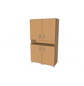 El mueble de baño está construido en tablero de 16 mm., en color elegido por usted, se compone de: 2 costados, suelo, techo, 4 puerta abatible, con todo el herraje necesario para su montaje.